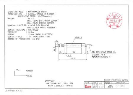 Contact rating | DC5V - DC24V Steady current: 10mA or less (Rush current: 20mA or less) When using the switch with LED, limit the current below 10mA |