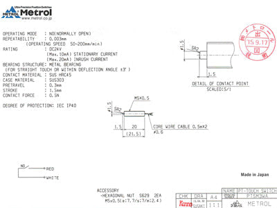 Cable | Core-wire cable: 0.5m(x2) Oil-resistant φ0.6, Tensile strength 15N Cabtyre cable: 2m Oil-resistant φ2.8 / 2cores, Tensile strength 30N, Minimum bending R7 |