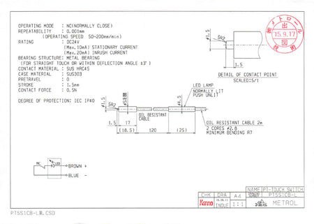 Cable | Core-wire cable: 0.5m(x2) Oil-resistant φ0.6, Tensile strength 15N Cabtyre cable: 2m Oil-resistant φ2.8 / 2cores, Tensile strength 30N, Minimum bending R7 |