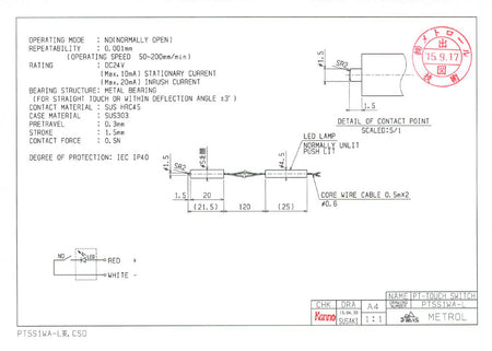 Cable | Core-wire cable: 0.5m(x2) Oil-resistant φ0.6, Tensile strength 15N Cabtyre cable: 2m Oil-resistant φ2.8 / 2cores, Tensile strength 30N, Minimum bending R7 |