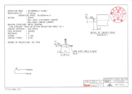 Cable | Core-wire cable: 0.5m(x2) Oil-resistant φ0.6, Tensile strength 15N Cabtyre cable: 2m Oil-resistant φ2.8 / 2cores, Tensile strength 30N, Minimum bending R7 |