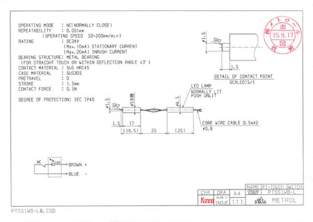 Cable | Core-wire cable: 0.5m(x2) Oil-resistant φ0.6, Tensile strength 15N Cabtyre cable: 2m Oil-resistant φ2.8 / 2cores, Tensile strength 30N, Minimum bending R7 |
