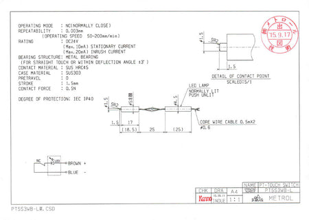 Cable | Core-wire cable: 0.5m(x2) Oil-resistant φ0.6, Tensile strength 15N Cabtyre cable: 2m Oil-resistant φ2.8 / 2cores, Tensile strength 30N, Minimum bending R7 |